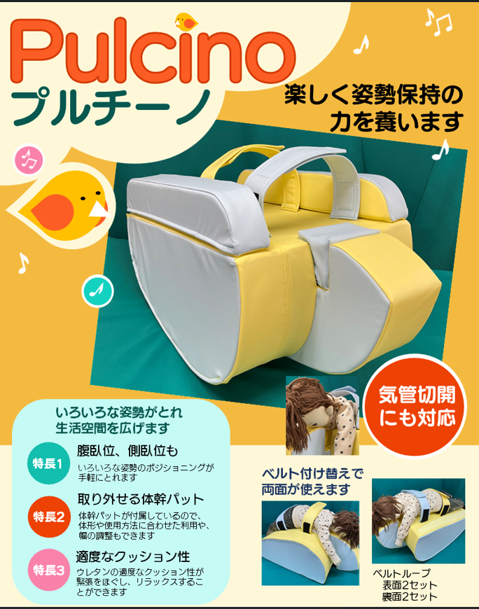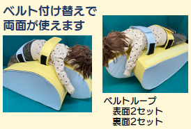 プルチーノはクッションの上下を替えることで腹臥位や側臥位としてお使いいただくことができます。